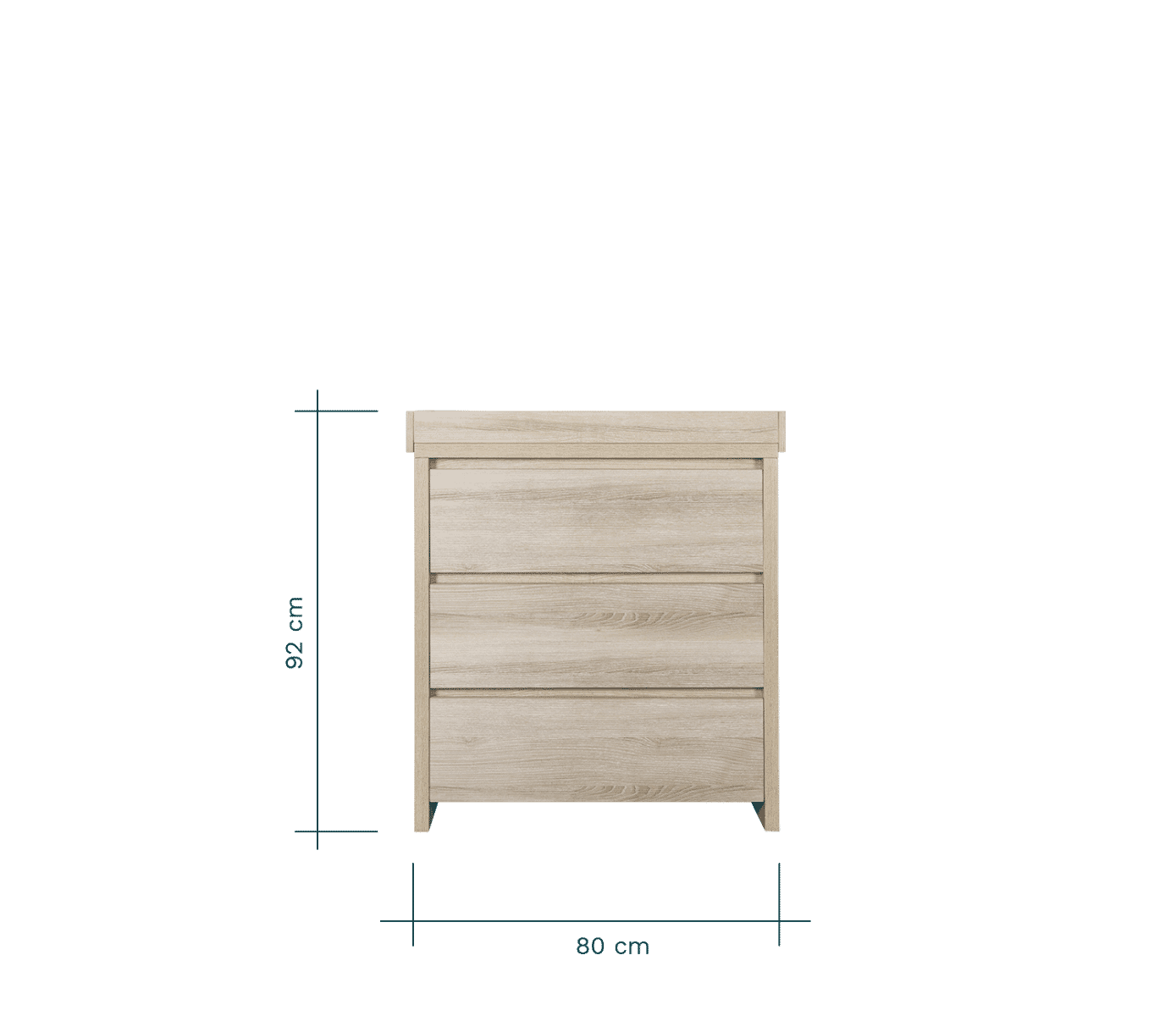 With three generously sized drawers, the chest changer offers ample space to neatly store and organise all your baby’s essentials, ensuring a clutter-free and easily accessible nursery.