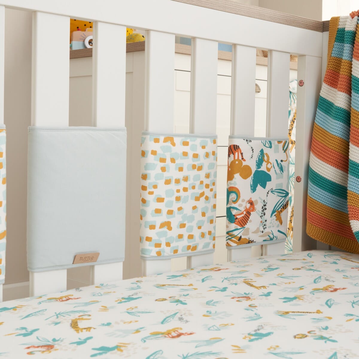 An alternative to the traditional cot bumpers, our cot wraps have been designed with soft padding to keep the baby protected from bumps and knocks during their sleep, whilst still allowing air flow between the cot slats.