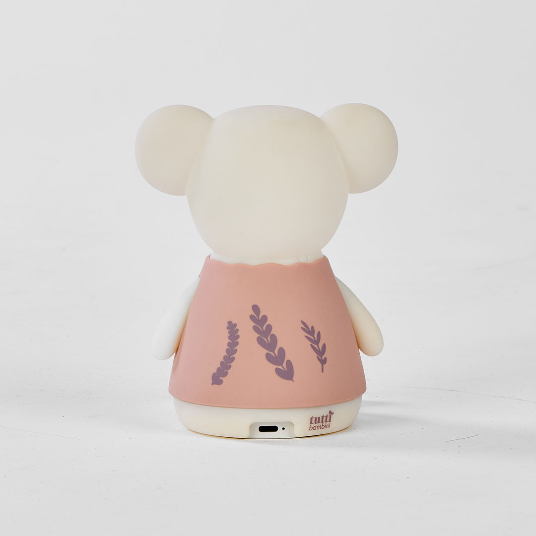 Margot Mouse glowing green mouse-shaped toy on a textured surface with a blurred background