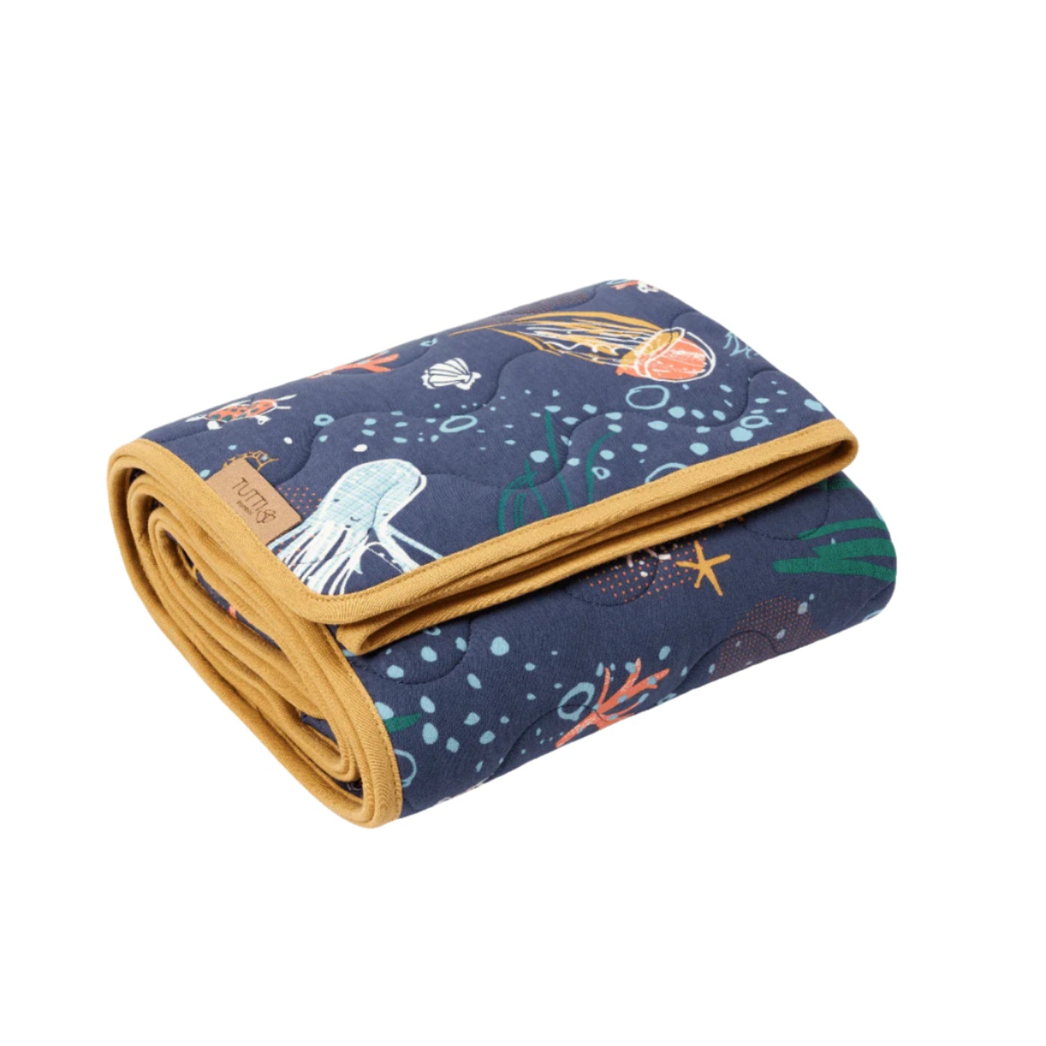 Made from sustainable bamboo cotton with 2.5 tog for all seasons, our Cot/Cot Bed Coverlets are designed as lightweight alternatives to traditional quilts and can be used from birth in room temperatures between 16°C-20°C. Our coverlet offers a wider width and a shorter length to provide enough product to tuck baby up in the recommended 'feet to foot' position. Part of Our Planet collection, the quilted coverlet carries on the exuberant colours and sea life theme. Includes free thermometer.