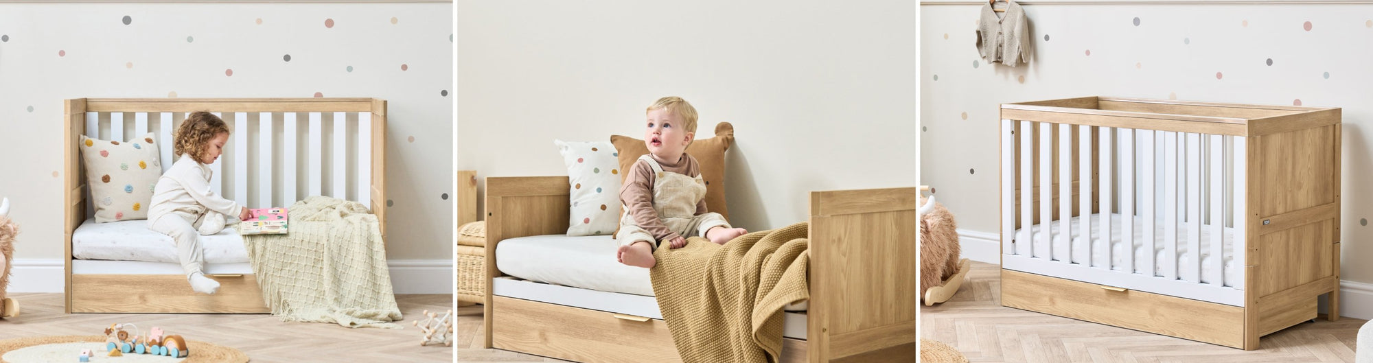 Explore our exceptional collection of cot beds, designed to grow with your baby from infancy to toddlerhood. Each cot bed combines style and functionality, ensuring a safe and comfortable sleep environment. Our cot beds are available in a variety of finishes and designs to match any nursery theme. Complete the look with our matching furniture, including wardrobes and baby changing units, to create a stylish space for your little one.