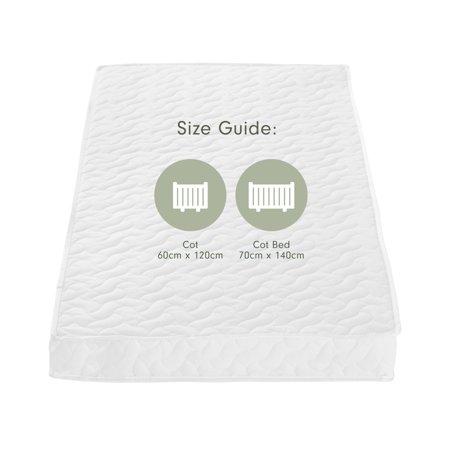The Pocket Sprung Cot Bed Mattress offers exceptional comfort and support with individual pocket springs and high-density foam walls for durability. Its softly quilted, breathable cover, ensures a cosy sleep environment. The fully removable cover is washable at 60°C and features anti-bacterial, anti-fungal, and anti-dust mite properties.