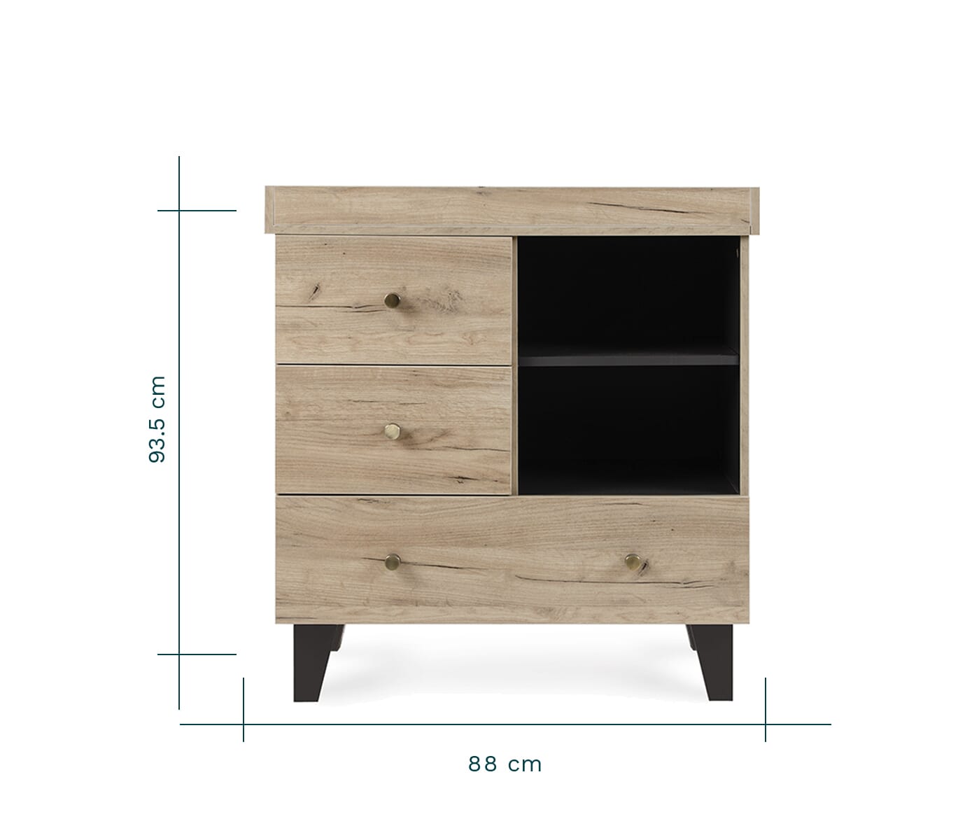 The Como Chest Changer in Slate Grey and Distressed Oak brings a refreshing yet familiar feel to your nursery. With two half width and one full width drawers, as well as an adjustable inner shelf and a removable changing top, the chest changer offers plenty of space to store all your baby’s essentials.