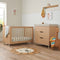 Meet our Fika Mini 2 Piece Room Set in White and Light Oak - a Scandinavian-inspired blend of modern simplicity and functionality. With bevelled edges, stylish splayed legs and chic cut-out handles, it's the ideal choice for those seeking a minimalistic, contemporary nursery look. Practical and versatile, this set includes a space saving cot that converts to toddler bed or sofa and a chest changer with ample storage for all your baby’s essentials.