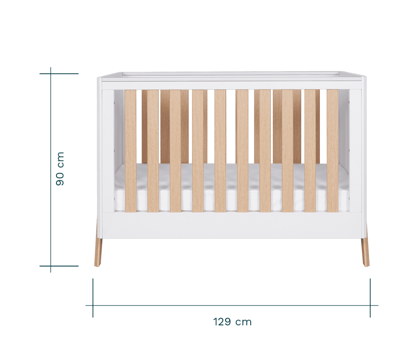 Meet our Fuori Mini 2 Piece Room Set in White Sand and Warm Walnut – a Scandinavian-inspired blend of modern simplicity and functionality. With exposed legs and a sleek appearance, it’s an ideal choice for those who desire a clean, contemporary nursery look. Practical and versatile, this set includes a space saving cot bed that converts to toddler bed or sofa and a chest changer with ample storage for all your baby’s essentials.