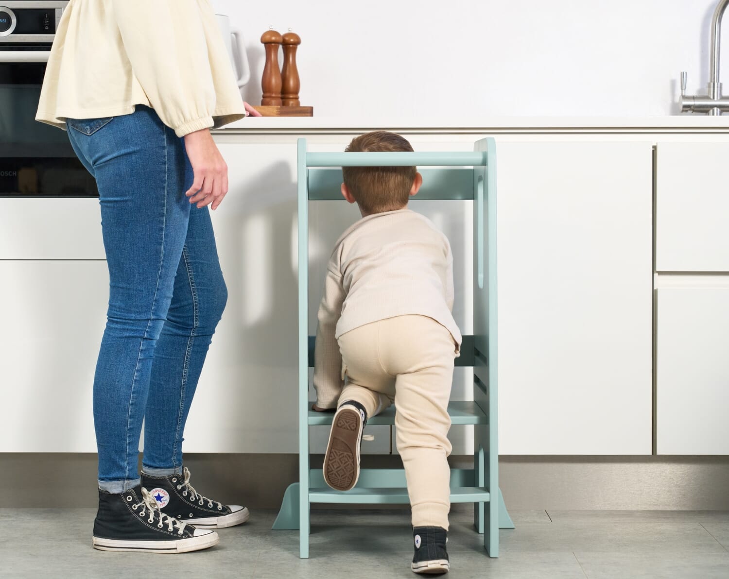 Transform your kitchen into a space of learning, independence, and shared experiences with our Helping Hands Montessori Toddler Learning Tower in Ocean Stone. By raising your child safely to counter height, this tower invites little ones to explore and engage in everyday tasks, building their sense of independence in an interactive environment.