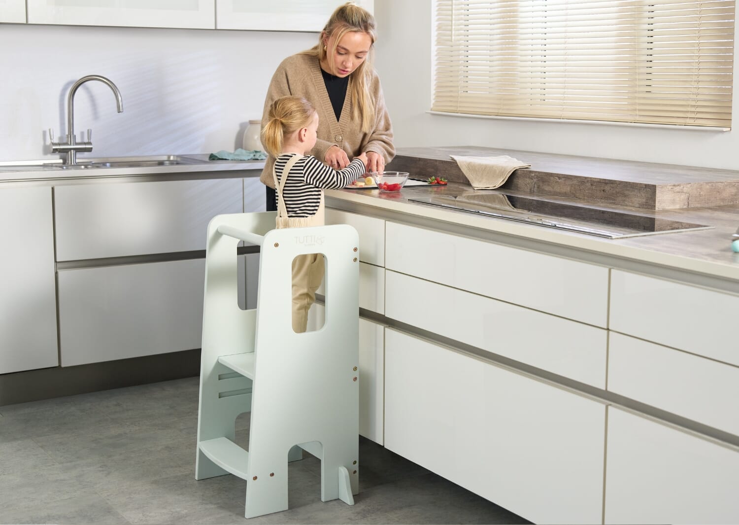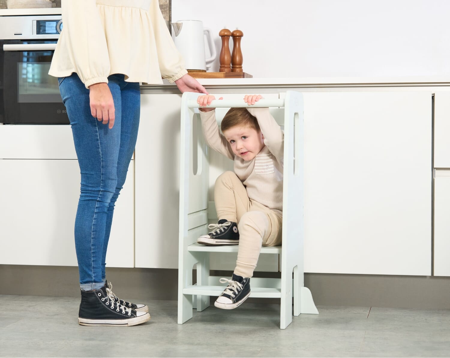 Transform your kitchen into a space of learning, independence, and shared experiences with our Helping Hands Montessori Toddler Learning Tower in Sea Mist. By raising your child safely to counter height, this tower invites little ones to explore and engage in everyday tasks, building their sense of independence in an interactive environment.