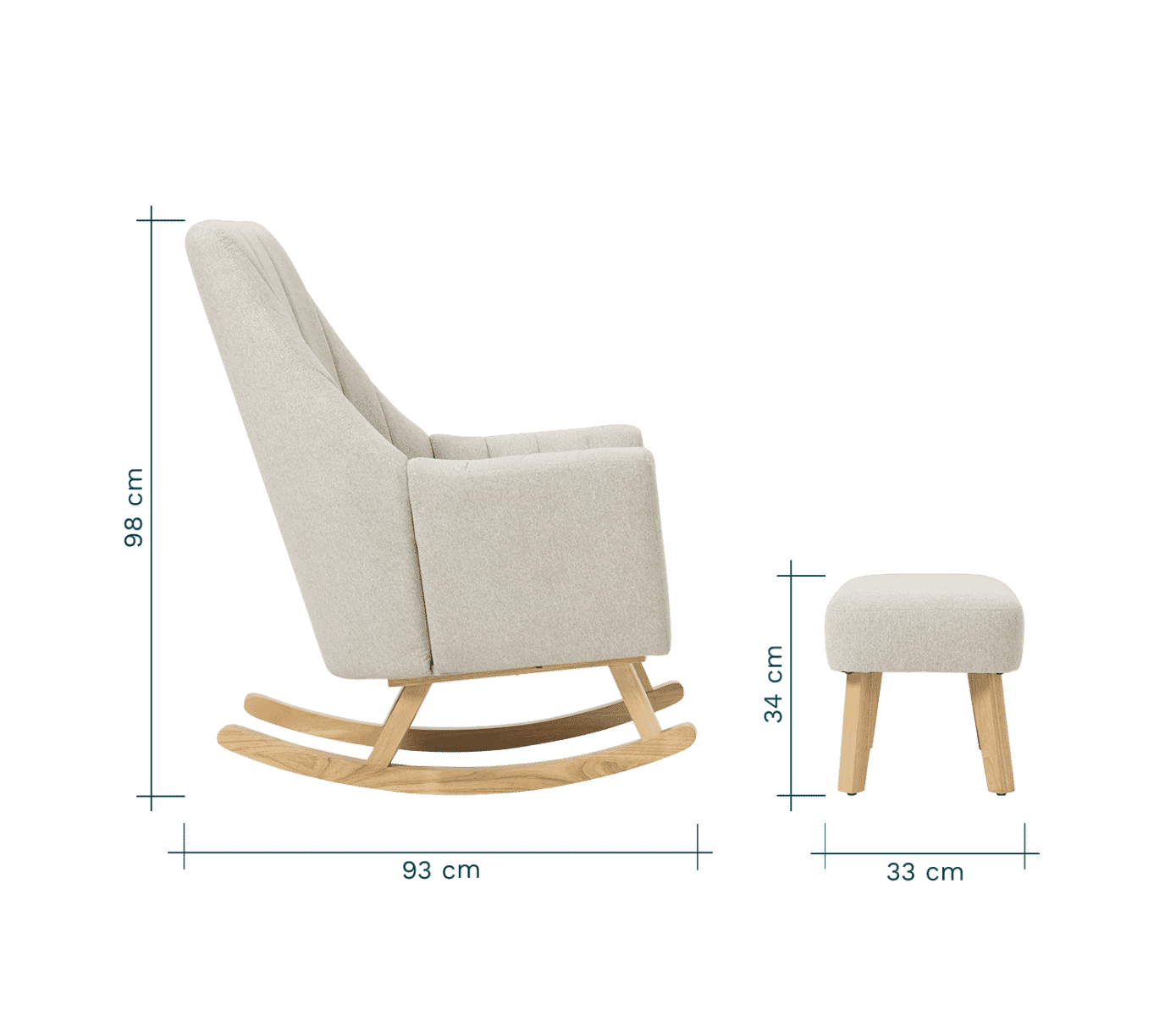 The Jonah Rocking Chair and Footstool in Stone is the ultimate blend of style and practicality for your nursery or home. With its sleek, modern design and ergonomic comfort, it’s perfect for feeding, bonding, or relaxing. The gentle rocking motion and soft cushioning provide a tranquil experience, while the matching footstool ensures added support. Built with durable materials, the Jonah chair is a timeless addition to any space.