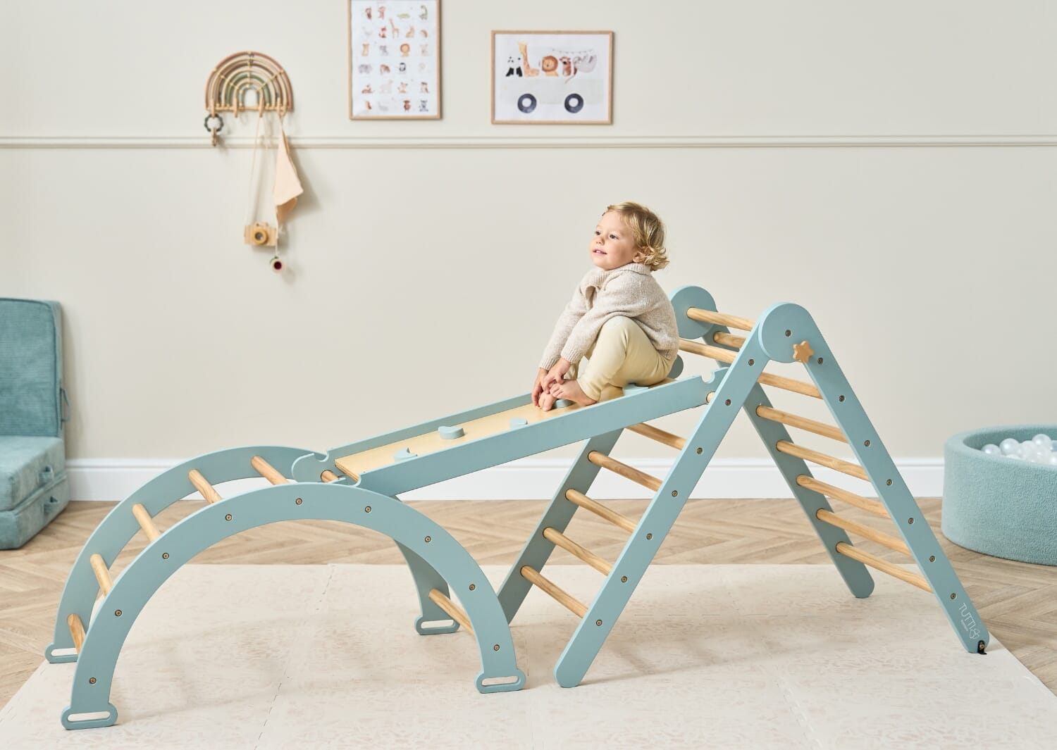 Scala Montessori 3-in-1 Pikler Climbing Frame with Climbing Wall - Ocean Stone