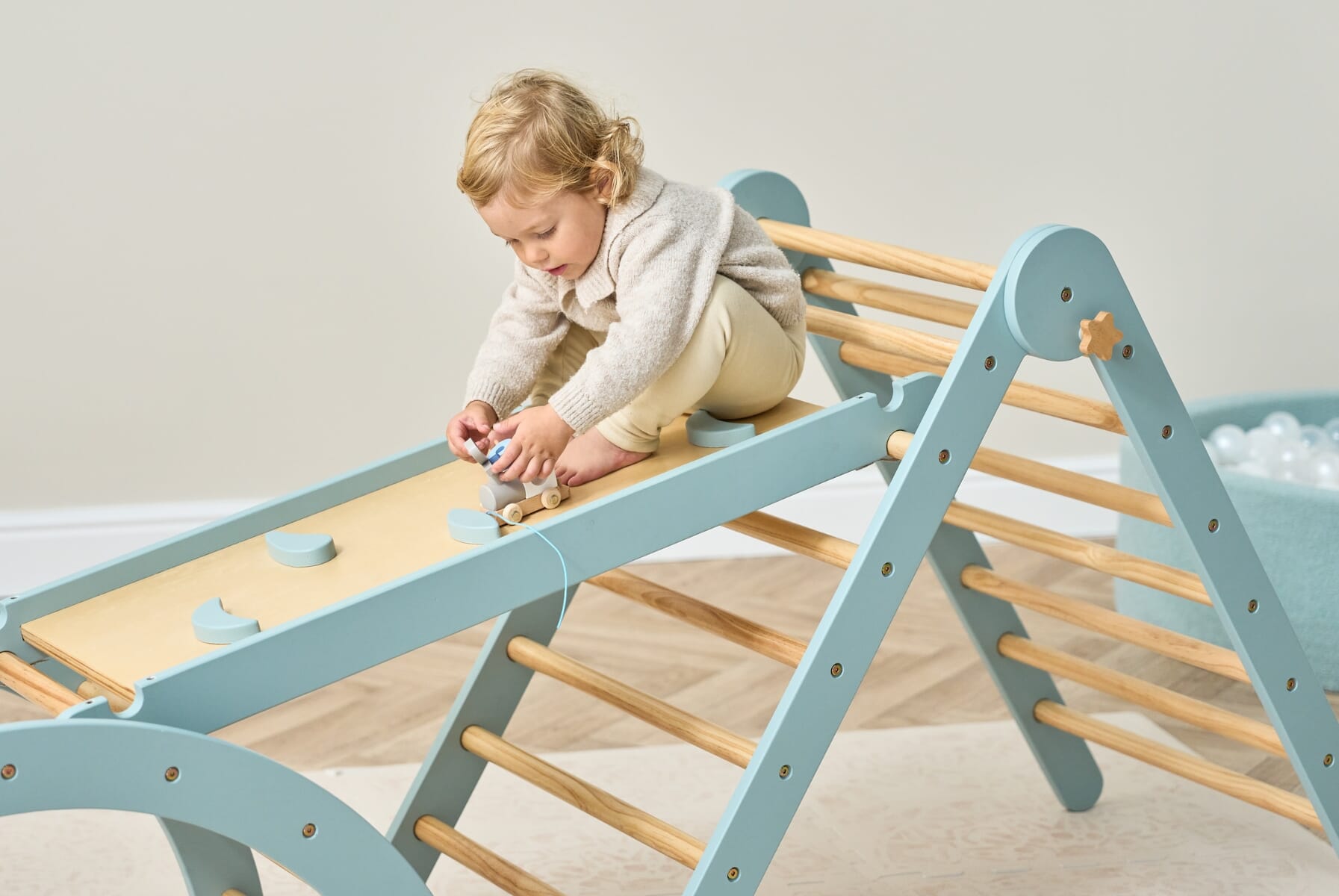 Scala Montessori 3 in 1 Pikler Climbing Frame with Climbing Wall - Ocean Stone